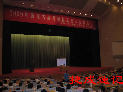2009浙江省高考志愿填報專家報告會在高考成績即將公布的前夕,在省人民大會堂隆重舉行。會上來自省教育考試院的專家詳細為廣大考生和家長解讀了2009浙江省招生錄取的相關政策和填報志愿的策略、技巧。現場有近千名考生和家長仔細聆聽了專家的權威解讀。