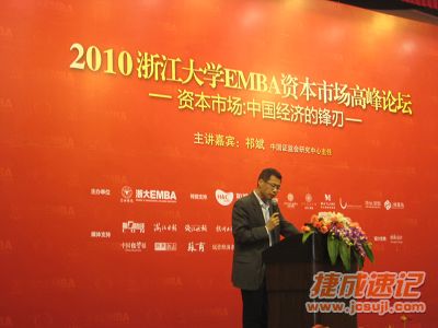 近日,浙江大學EMBA校友年會在浙江省人民大會堂隆重舉行。下午為“2010浙江大學EMBA資本市場高峰論壇”,邀請了中國證監(jiān)會研究中心主任祁斌主講“資本市場:中國經濟的鋒刃”。