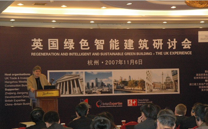今天上午,在雷迪森酒店一場關于綠色建筑智能國際高水準的交流盛會在這里開始,由杭州市西湖區人民政府、英中貿易協會,浙江建工房產開發集團有限公司,聯合英國最大的建筑與咨詢行業協會——英國精英技術局,英國投資貿易總署等國際等級的綠色建筑權威機構,并且邀請了杭州部分規劃機構、科研單位等一百多人共同研討國際資本潮流,國際節能新技術與產品,能源與環境和可持續發展等等課題.